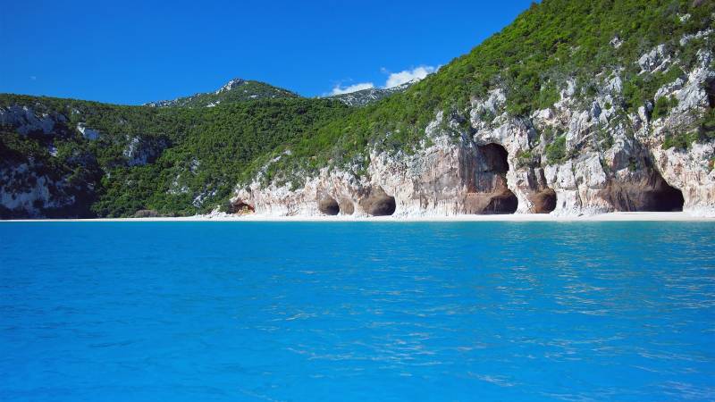 Charter a yacht in cala luna and take the challenging hike to the secluded nearby beach of Cala Fuili. Take in the waters at sunset as the changing light reflects off the seabed. Explore Cala Gonone, with a promenade and relaxed beach bars.