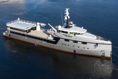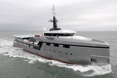 Abeona, the largest-ever full custom support vessel by Damen Yachting, is a 75.25m masterpiece combining rugged functionality with sleek design, featuring a distinctive grey hull with an orange boot stripe. A spacious open aft deck for tenders and water toys since she was built to support superyachts over 100m. Abeona can accommodate for 4 guests and 37 crew and has advanced emergency relief capabilities, setting a new standard in versatility, style, and operational excellence at sea.