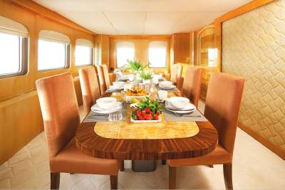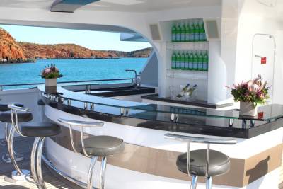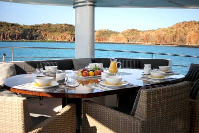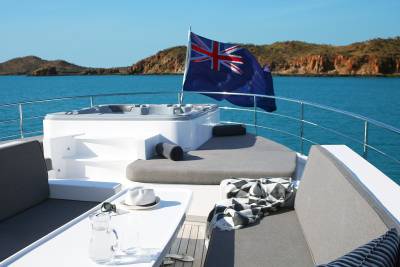 This expedition vessel is ready for any adventure, from gamefishing to outback exploration in the Kimberley, NW Australia. 10 guests are accommodated in 5 ensuite air-conditioned cabins, looked after by 10 crew including 2 chefs. Anda’s optional 16m fishing vessel, The Fortescue, runs at up to 20 knots.