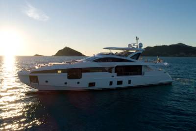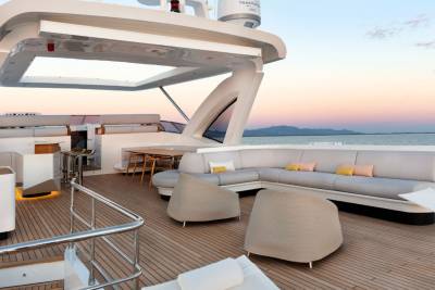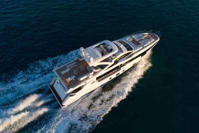 With a carbon fibre superstructure and Pierluigi Ausonio’s Displacement to Planing hull, the Azimut Grande 32 Metri’s sporty silhouette doesn’t just promise performance, it really delivers too. Add to that the modern, light-filled, soothing interiors and beach club area with pivoting swim platform, and you have a yacht that guarantees enjoyment.