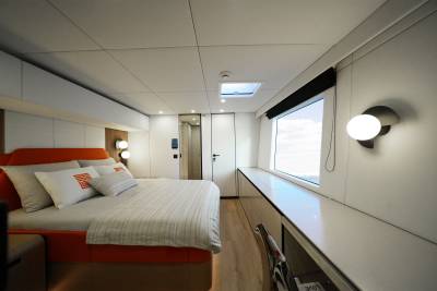 Outside enjoy a long lunch in front of ever-changing views on the main deck aft or soak up the sun from the large sunbathing area forward. You’d be forgiven for spending most of your time on the sun deck, where there is a bar, a dining area and large bean bag cushions. Wherever you are on board, you’ll be comfortable and content.