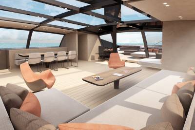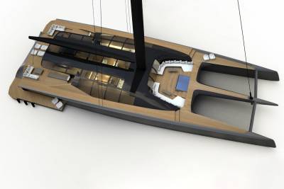 BlackCat 50 is an entirely new superyacht platform, setting the standard in large cruising catamarans. This will be the fastest sailing superyacht and the largest carbon fibre catamaran ever built, with a predicted top speed of 30+ knots. The concept has been created by world renowned sailor Mitch Booth and designed by Malcolm McKeon. BlackCat 50 will be constructed in Prepreg carbon by Baltic Yachts, with a Rig & Sails package developed and optimised by North Sails and Southern Spars.The ultimate in single deck living, the yacht features 620m² of open exterior areas and 320m² of interior space, a walkthrough living experience on a scale never before seen on the water. Interiors by M2 Atelier are in the style of a New York loft, with glass wrapped overheads adding space and light. Fully engineered, the project is ready to begin build upon signing.