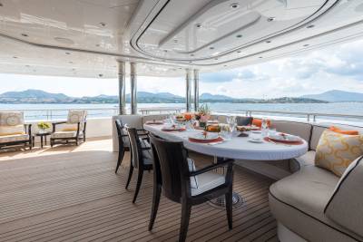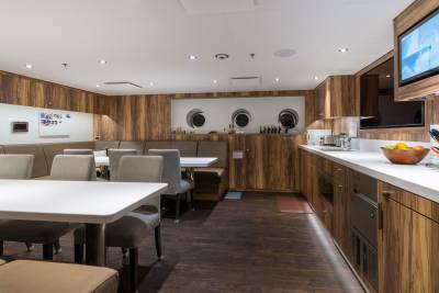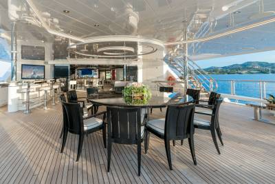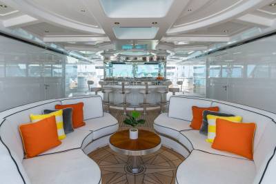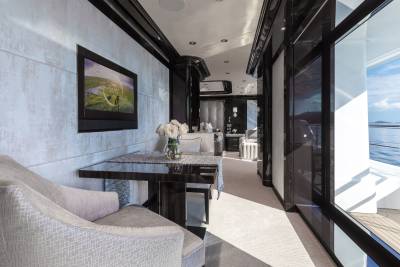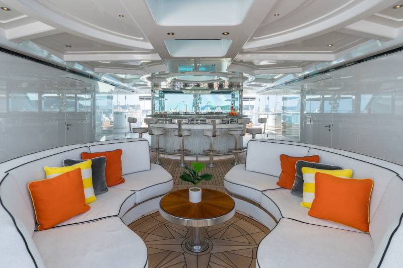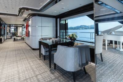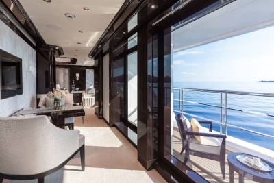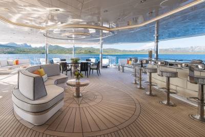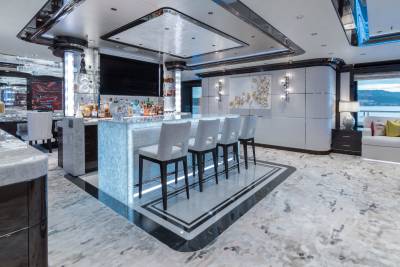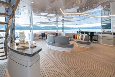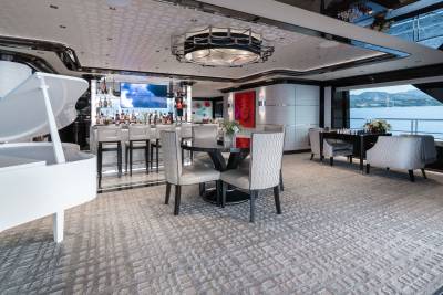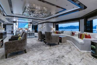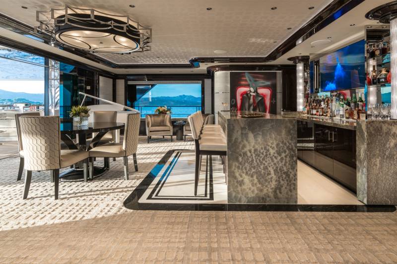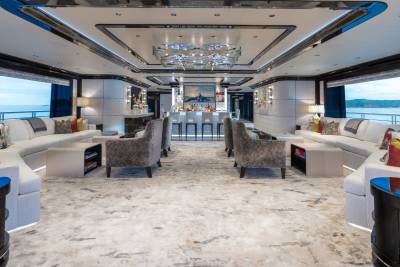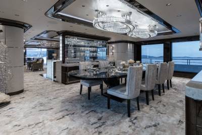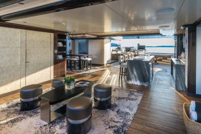 The volume is striking, with impressive ceiling heights adding to the airy, spacious feeling on board. There are lighting options and configurations for any mood; every detail has been carefully considered to create the perfect atmosphere for any occasion.