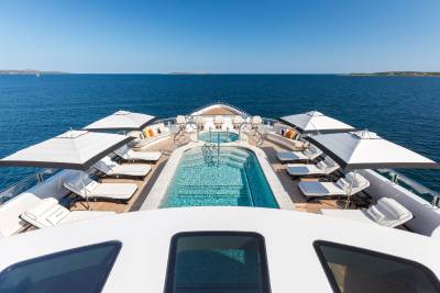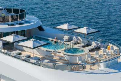 Entertainment and seamless service is never far away, with six strategically placed bars across the decks. The variety of exterior spaces allows for any and every scenario. The observation deck is specially dedicated to panoramic views while the sun deck with huge mosaic-lined pool and hot tub is an unparallelled relaxation space.