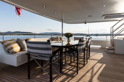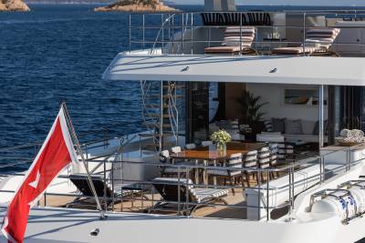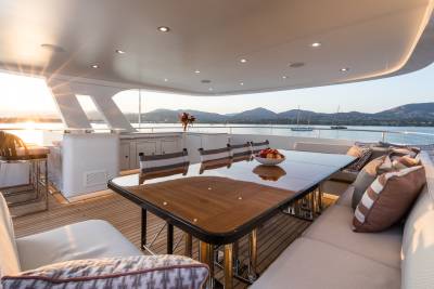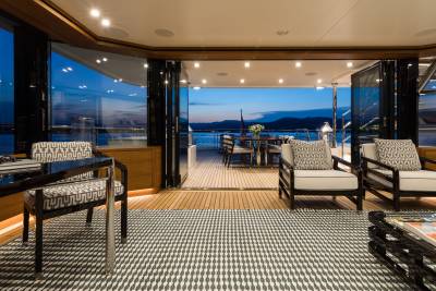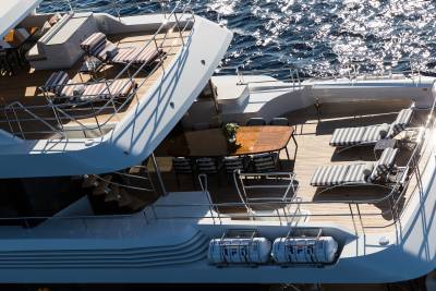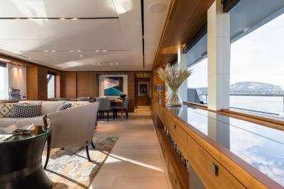 Step aboard, and the dialogue between interior and exterior begins. The Main Deck opens into an airy salon and dining area, where expansive glazing frames sea vistas at every turn. Ascend to the Bridge Deck, and a Winter Garden offers lightness and serenity — a sanctuary afloat. All the while, the tailor’s hand is visible: selections of natural materials, elegant custom joinery, and a palette that whispers rather than shouts. The experience is never “wow,” but always deeply, profoundly “yes.”