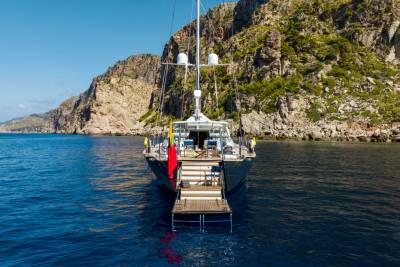 From racing to cruising, Dakota has considered all aspects of sailing and provides an experience for guests to remember. She has a drop-down swim platform which offers easy access to the water. The thrill seekers searching for adventure below can dive straight in.
