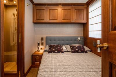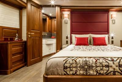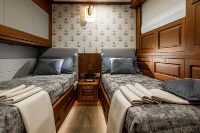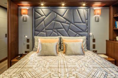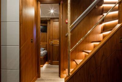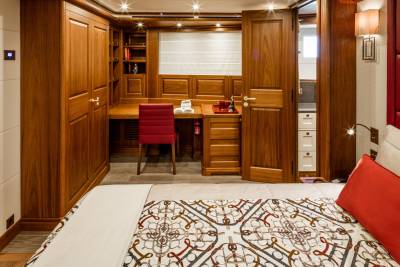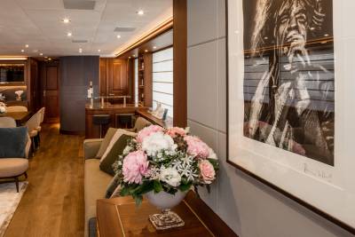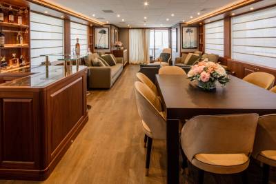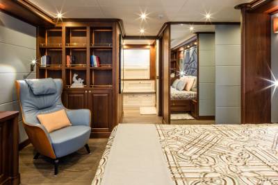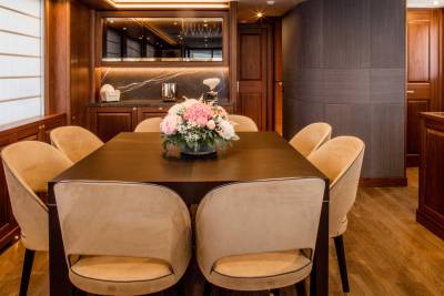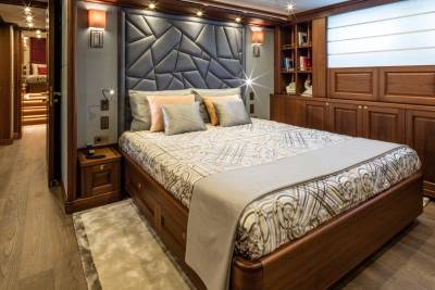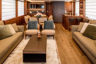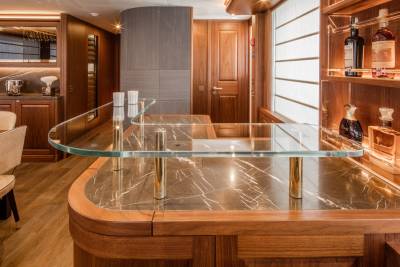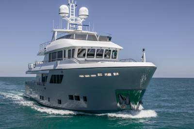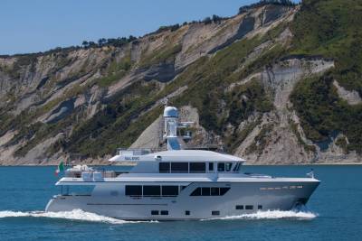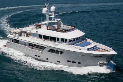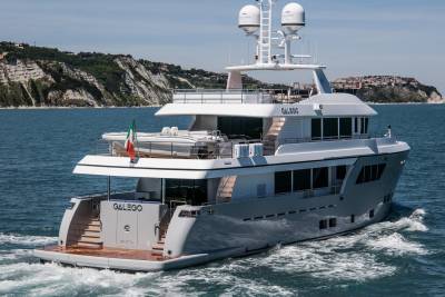Built by Cantiere delle Marche in 2017, Galego features functional design furniture by Pierluigi Floris. The exceptional warmth of the interior was created by combining walnut wood and leather, which imparts timeless chic to the yacht. The explorer yacht also has a garage which was designed to provide various toys and a diving center. The sundeck disposes a full optional equipped bar for the lounge area, and a fully-equipped open-air fitness area with Jacuzzi.