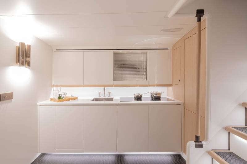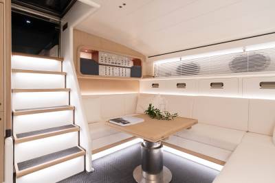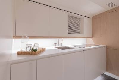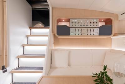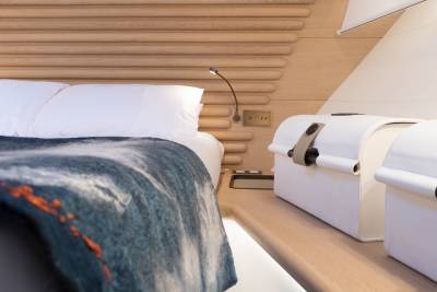 Thoughtful considerations, such as widening and improving accessibility to the companionway from the central living salon to the front cabins, ensure optimized space usage. The owner's suite features individual storage solutions on both sides, maintaining a tidy and organised environment. Meanwhile, the twin cabin is the perfect place for guests to relax and unwind, with ample storage for their belongings.