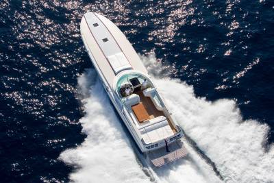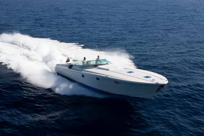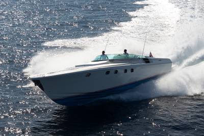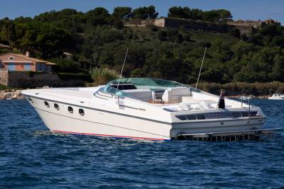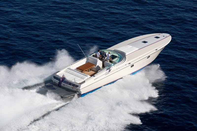 Hammer is an exceptionally high-spec example of the Magnum 60. Sleek, sporty and imbued with timeless style, the yacht effortlessly reaches top speeds of over 50 knots and looks good doing it.
