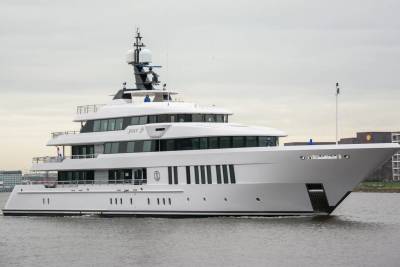 Just J’s is a yacht by Royal Hakvoort, delivered in 2015 with sleek exterior and interior design by Sinot Yacht Architecture & Design and naval architecture by Diana Yacht Design. Featuring a large countercurrent pool, seven uniquely colored guest cabins, a cinema room, gym, tender garage. Just J’s boasts expansive windows that flood the interior with natural light and panoramic sea views, embodying modern sophistication and comfort for exceptional cruising.