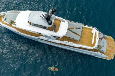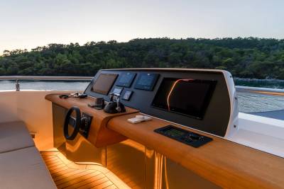 Kasif was built to roam and to do it efficiently. Cruising comfortably at 10 knots with a 5,000nm range, she consumes just 30L/hr at 8 knots. ABT TRAC stabilisers ensure smooth sailing, whether you’re crossing oceans or anchored in a hidden cove.