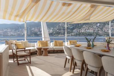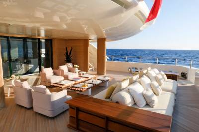 Delivered in 2023 by the renowned Italian shipyard Benetti, Kasper 7 is a multi-award-winning 67.16m motor yacht that masterfully blends sophisticated design with a relaxed Mediterranean resort ambiance. The interiors emphasize comfort and style, while the exterior, crafted by Giorgio M. Cassetta, stands out with its distinctive large circular windows, each nearly two meters in diameter and flood the interior spaces with abundant natural light, enhancing the yacht’s serene and inviting atmosphere.