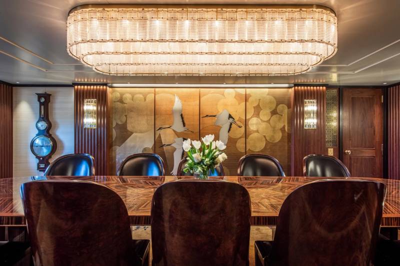Marala's interiors have been expertly restored by Muza Lab to showcase her original 1930s Art Deco design. The main salon is adorned with a skylight and working fireplace, while the dining area features wood paneling and period chandeliers, seating up to 12 guests. The result is an exquisite blend of luxury and timeless elegance.