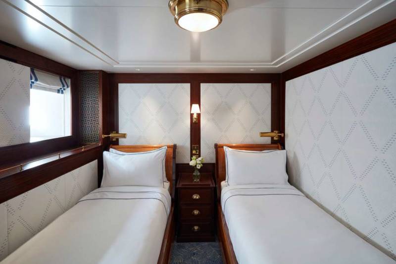 Marala’s accommodation blends the romance of her 1930s pedigree with considered contemporary comfort. The principal suite sits on the upper deck with private lounge access and a serene bathroom with a bath. Five additional staterooms on the lower deck echo the yacht’s storied past, each with warm woods, soft tones and thoughtful detailing. With generous headroom and modern touches discreetly integrated, Marala offers a uniquely atmospheric setting for guests who appreciate timeless character paired with quiet luxury.