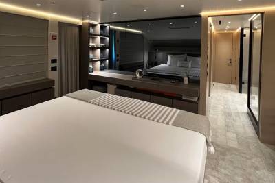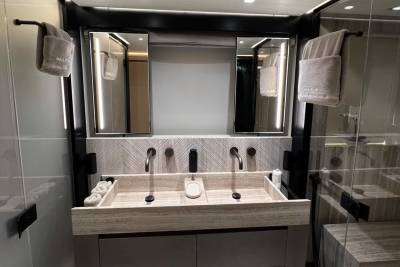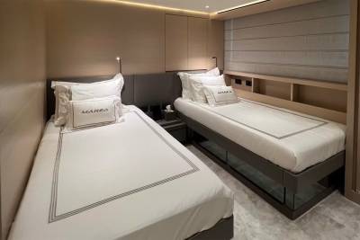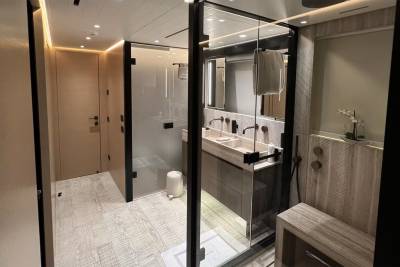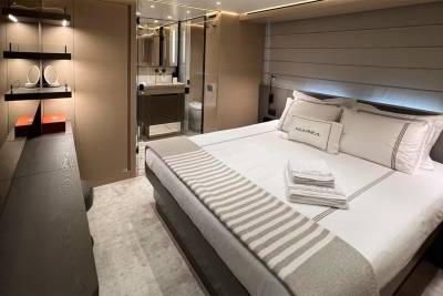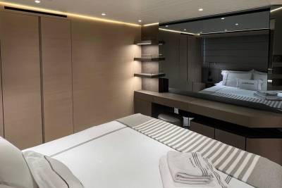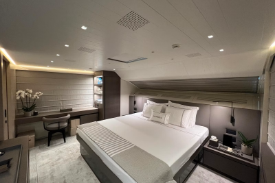 Taiji’s main deck master suite features large windows, creating a bright and open space. The suite is also equipped with a spacious ensuite, an opening portside window, a walk-in wardrobe, and a private balcony where you can enjoy spectacular sunsets after a fun-filled day.