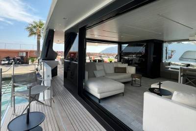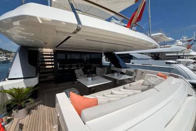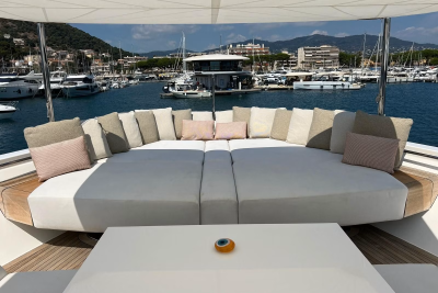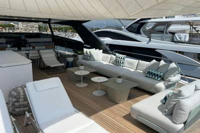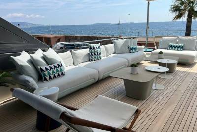 Few superyachts enjoy a sundeck like Marea, equipped with a bar, alfresco dining space, and plenty of room to soak up the sun. Her sundeck also features a hard top with a retractable centre panel, providing shade when desired. And when you're ready to soak up some more sunshine, simply retract the centre panel.