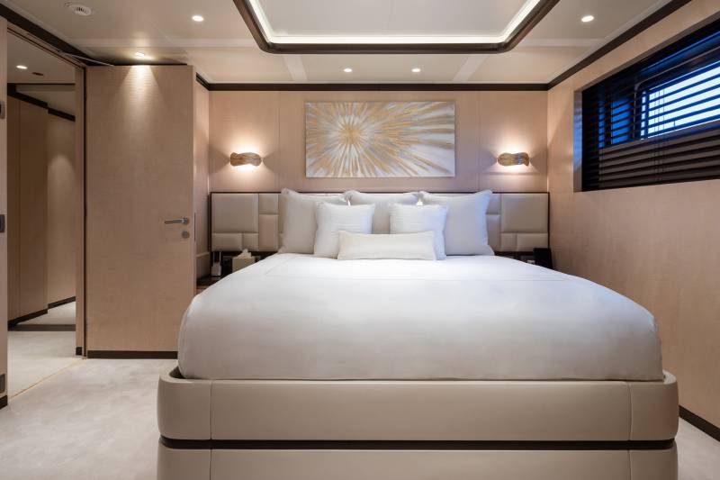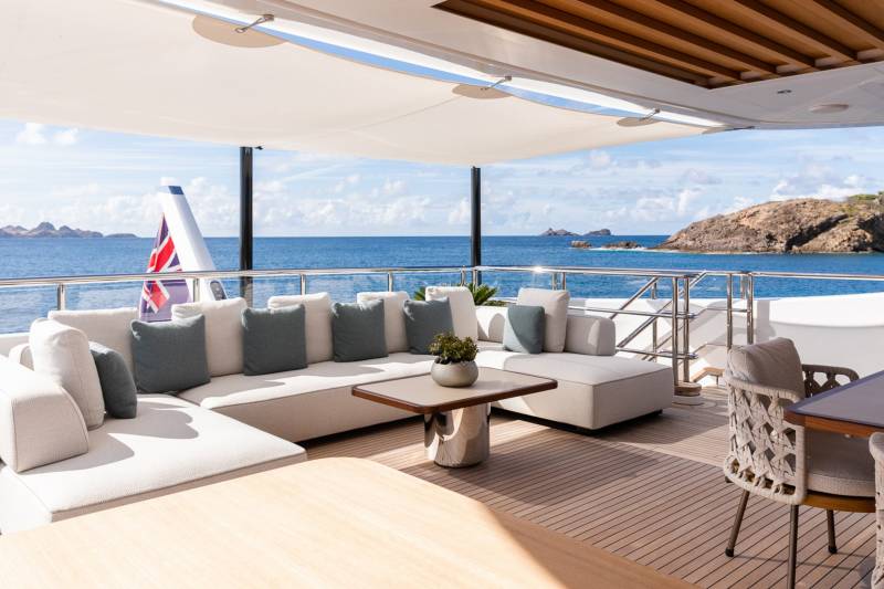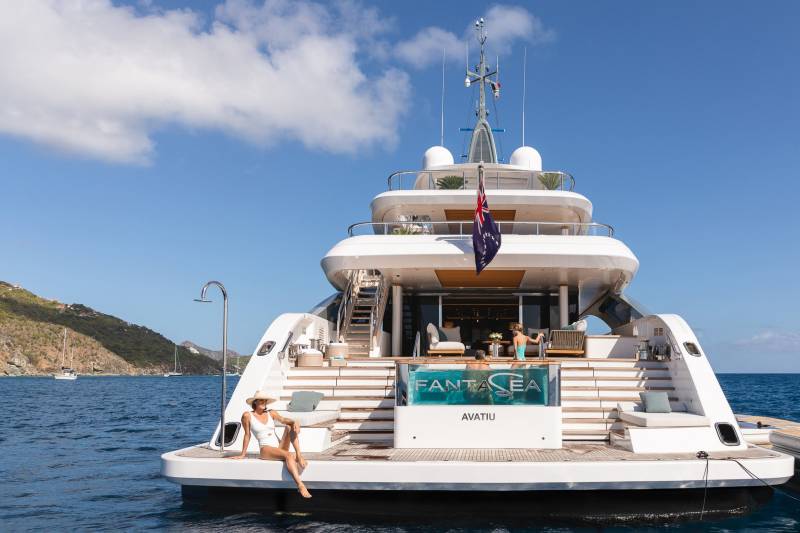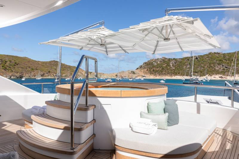 The third hull in Benetti’s award-winning B. Now series, newly delivered Fantasea is one of the most exciting yachts to join the charter market in recent years. Designed for the utmost in outdoor living, her spectacular outdoor spaces include a spectacular sun deck with Jacuzzi, a main deck panoramic pool lounge area, and a 36 square-metre beach club with an infinity pool. She can accommodate 12 guests across 6 staterooms, including a bright upper deck master suite at the bow with its own privatized deck area.
