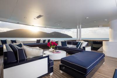 Experience fun on every deck onboard 54m Baglietto Mischief. Launched in 2006, Mischief underwent an extensive 2015/2016 refit including new carpets, new furniture and TVs throughout, deck updates and installation of the latest in AV technology. She went trough a refit completed in 2017 which saw the addition of a stunning new cocktail bar and a 3 x 2m video wall in the main salon. With large volumes, a proven track record and a fun friendly crew, Mischief's cool, chic interior is complemented by spacious exterior decks. An outstanding collection of water toys includes jetskis, JetLev, extensive fishing gear, seabobs, paddleboards and sundeck gym equipment.