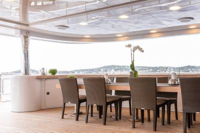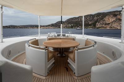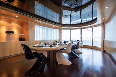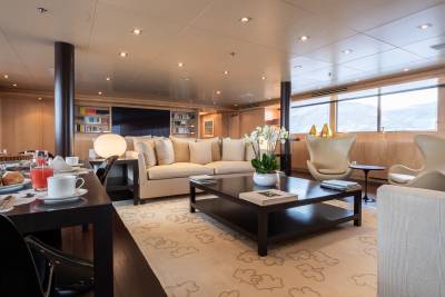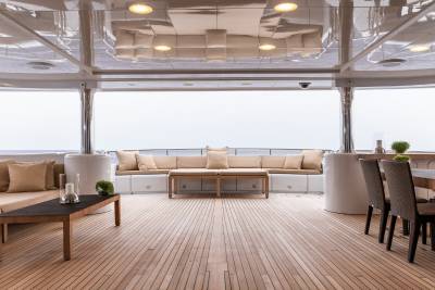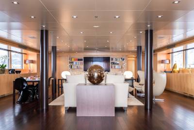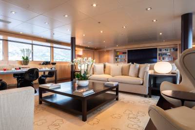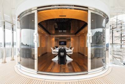 Moneikos has drawn attention to different areas from most yachts. She offers vast interior volume with a mostly shaded sun deck. Her focus is to provide guests with social spaces for all, inviting them to wine, dine, socialise and entertain in all areas. Guests are invited to enjoy all spaces from her cabins, to the main salon through to her sun deck.