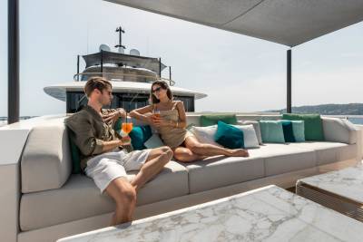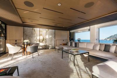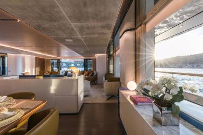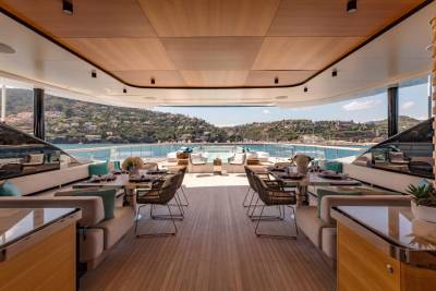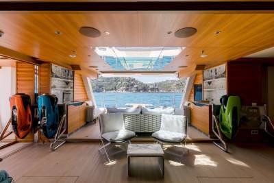 The outstanding beach club is slightly different from other yachts of C’s size. The height of the vessel allows for more space, it also opens on three sides which lets natural light and a sea breeze fill the area. As C offers options for a variety of guests, it will come as no surprise that the beach club can transform into a gym, sauna, or a massage room.
