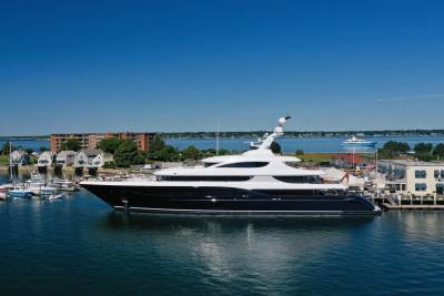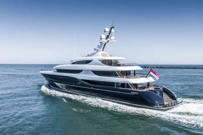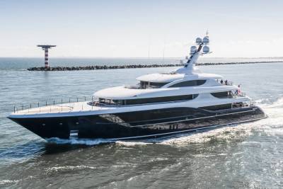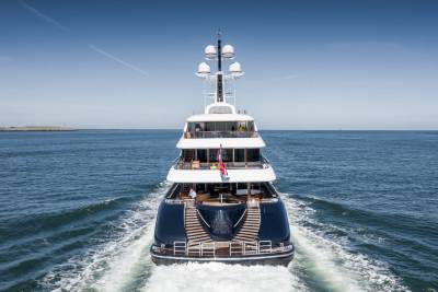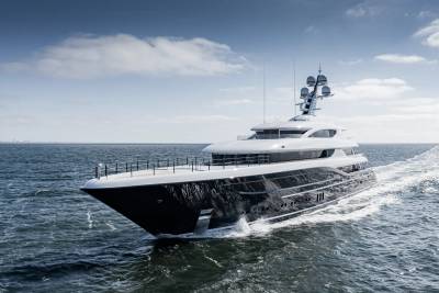 Podium captivates with its commanding 74m presence, showcasing a stunning deep blue hull contrasted by a pristine white superstructure and expansive floor-to-ceiling glass glazing, that floods the interiors with natural light. This remarkable design effortlessly merges cutting-edge naval engineering with subtle, refined luxury, creating a sleek and graceful profile that turns heads on every horizon. Guests enjoy seamless access to a wealth of sophisticated amenities, highlighted by the fully equipped gym and deck jacuzzi. Every element of Podium is crafted to deliver an exquisite blend of elegance, comfort, and exceptional living at sea.