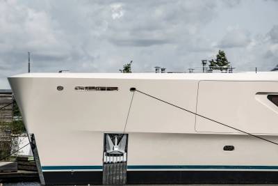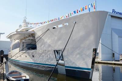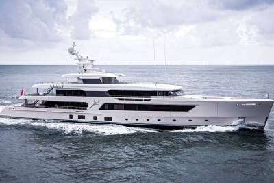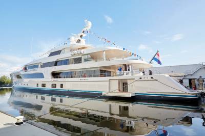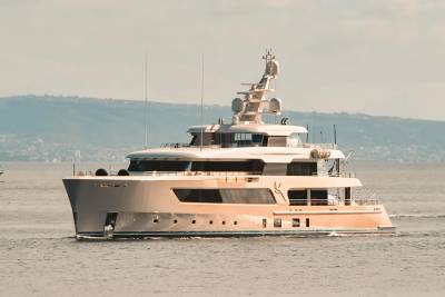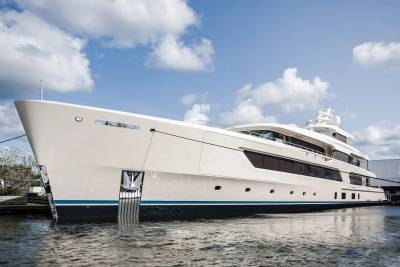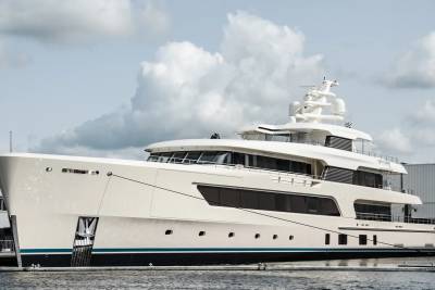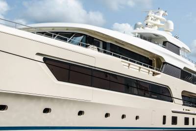 Samaya, a 69.5m Feadship yacht that combines De Voogt’s functional naval architecture with RWD’s sophisticated interior by. Her purpose built design aims to support extended diving expeditions worldwide. Painted in a subtle lunar white with teal accents inspired by marine life, she offers a state-of-the-art diving center, expansive sun deck, large tender garage, and 5,000 nautical mile range. She delivers a seamless blend of autonomy, elegance, and purpose-built adventure.