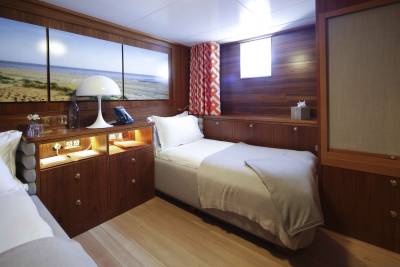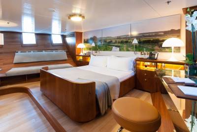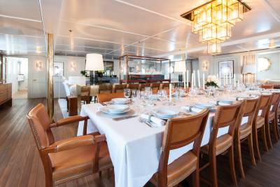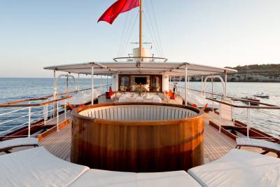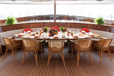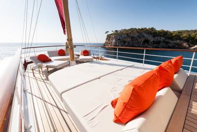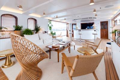 With a history that dates to 1938 and includes wartime service, a charter onboard Shemara is a journey back in time, with today’s superyacht standards. A major rebuild and restoration in 2014 accentuates the original features with contemporary details. On deck, take in a treatment in the dedicated outdoor massage space or relax in the Jacuzzi. Inside, retreat to classic-modern suites. 12 guests are served by a crew of 16.