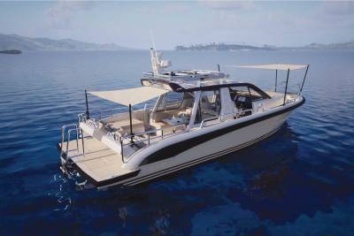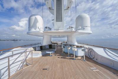 Solace carries a full fleet of electric boards, foil gear, diving and snorkelling kits, and towables – plus a custom jellyfish pool and a huge swim platform for basecamp-style fun. Her 12m chase tender opens access to adventures far from port.