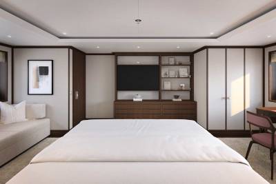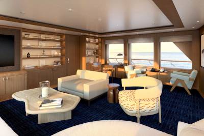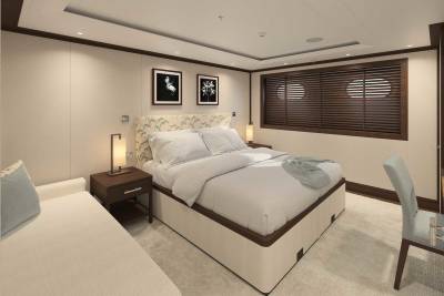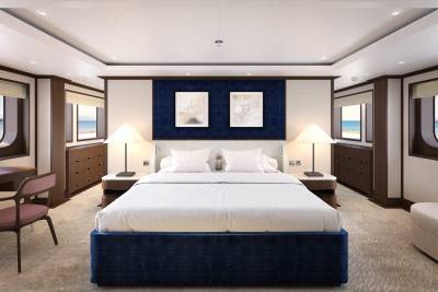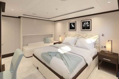 Designed by Vickers Studio, the interiors are warm and contemporary, perfect for families and private groups. Five guest suites welcome 12 guests, with two additional berths for guides or specialists. Her tender game? Unmatched – including a 12m Espen Øino-designed chase tender for remote landings and multi-day excursions.