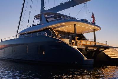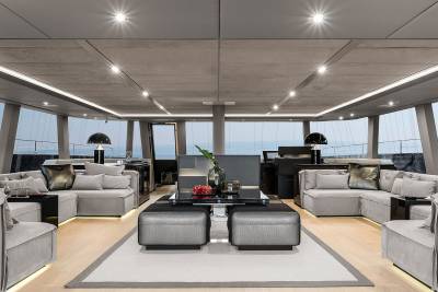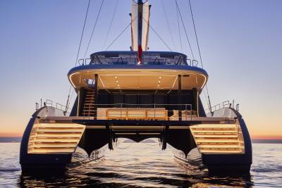 A luxury sailing catamaran conceived for the modern owner, the Sunreef 80 ticks all the boxes as a contemporary, high-performance multi-hulled yacht with 340msq living space. Built from lightweight composite, the 24m is primed for transoceanic adventures from the Med to the Caribbean. Exterior and interior blend into one onboard experience, where teak decks, high bulwarks and classy lines underscore the boat’s zeitgeist style with a classic edge.