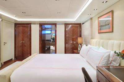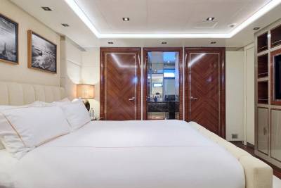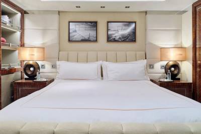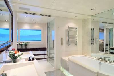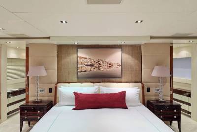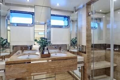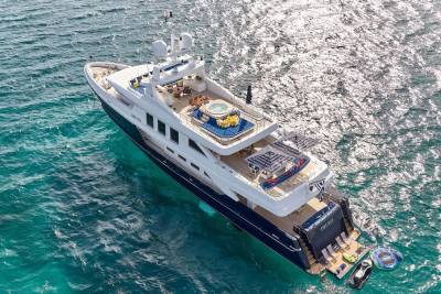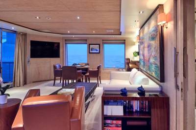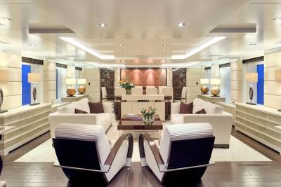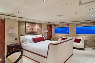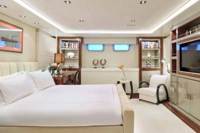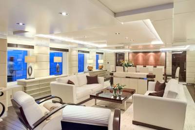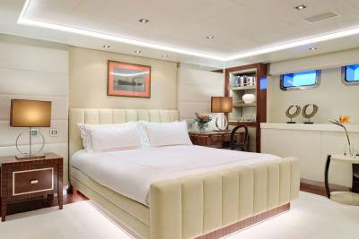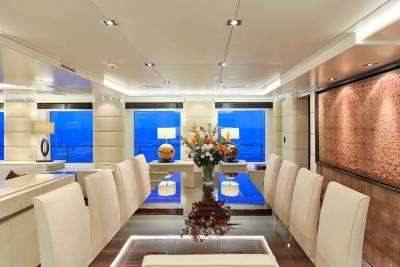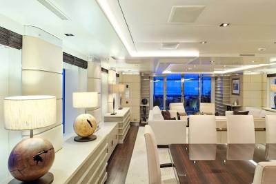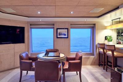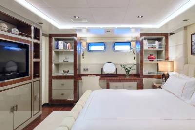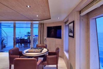 With an interior by Bannenberg & Rowell in rich materials inspired by Italy and Africa, explorer yacht Timbuktu is a striking blend of avant-garde sophistication and contemporary flair. Her unusual exterior features oversized windows which let in natural light. A gym on the upper deck is equipped with a running machine and a cross trainer, as well as a TV and an iPod dock. Nearby is shaded dining for 12. Accommodation is for 10 guests in a full-width Master suite, 2 VIPs and 2 twins.