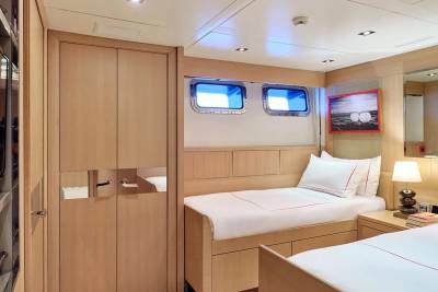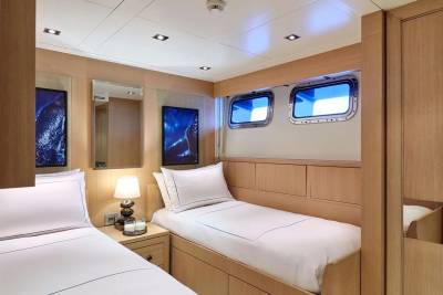 Timbuktu, renowned for its impressive sailing capabilities, effortlessly reaches speeds of up to 22 knots, making it a sleek and swift vessel on open waters. Whether navigating through serene coastal waters or embracing the excitement of high-seas adventures, Timbuktu stands as a testament to cutting-edge maritime engineering and the pursuit of unparalleled speed on the seas.