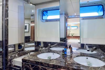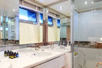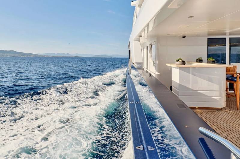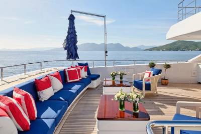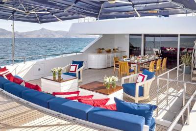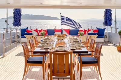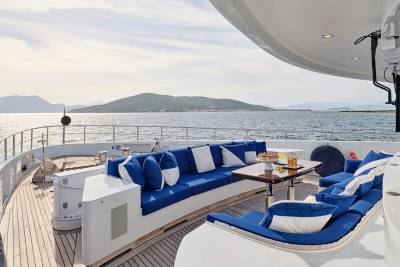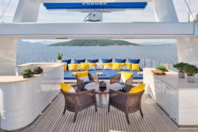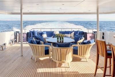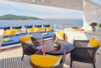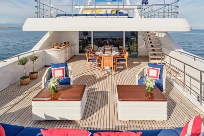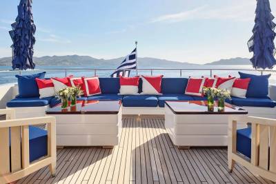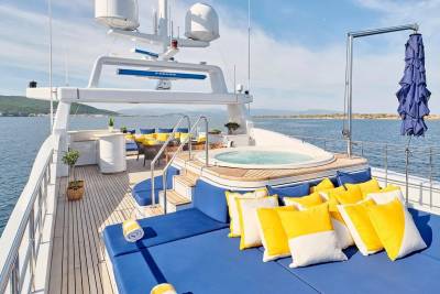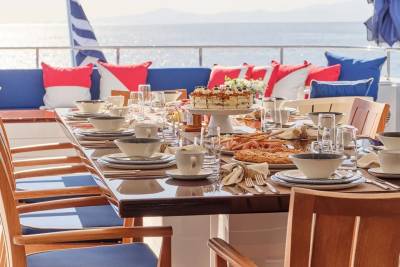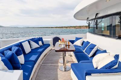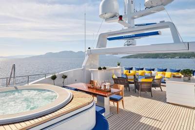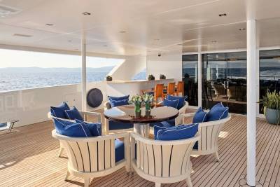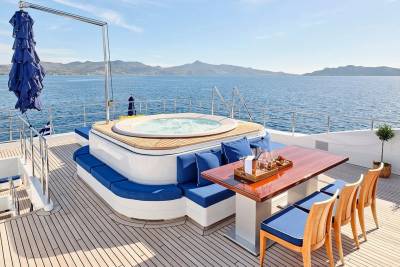 Bask in the sun-drenched ambiance of our expansive sundeck, where you can immerse yourself in leisurely moments. Take a refreshing dip in our spacious pool, unwind on the plush sunloungers, and savor a delectable meal served al fresco, skillfully prepared to your exact preferences by our talented onboard chef. Whether you're seeking relaxation or a culinary delight, our sundeck offers a perfect oasis for your enjoyment.