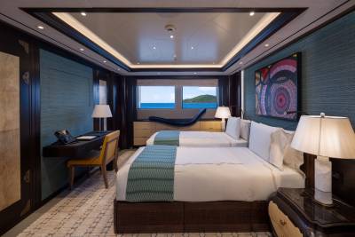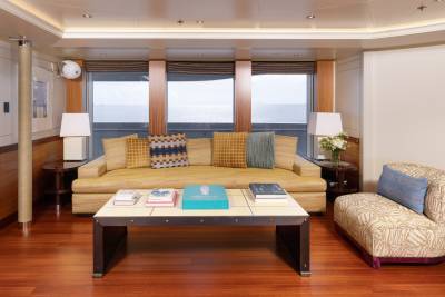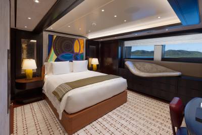 Whisper's accommodation is designed around comfort, flexibility and quiet retreat. Seven beautifully finished suites welcome up to 12 guests, led by a standout principal suite with its own private deck and Jacuzzi. VIP and convertible cabins adapt easily for families or mixed groups, while a discreet sea‑level cabin offers added comfort for those sensitive to motion. Throughout, the mood is light, refined and reassuringly calm.