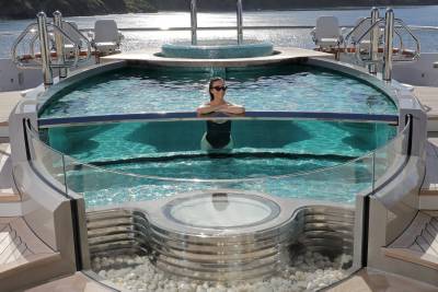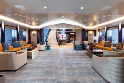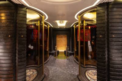 The sports bar can transform to a night club by night. While Whisper can – and has – hosted the largest parties, the beauty of her Reymond Langton design is its ability to create an atmosphere of warmth and intimacy. Soft, soothing lighting bathes the interiors, enhancing the sense of cosiness, while precious materials and delicate touches provide luxury at every turn.