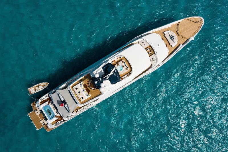 Andrea is an award-winning yacht renowned for its luxury and extensive amenities. It features five decks, including a 10,000-litre swimming pool, entertainment and lounging areas, a spa with a balcony for massages, indoor and outdoor cinemas, a private deck from the master suite, an onboard gym, and an elevator, ensuring a variety of spaces for relaxation and enjoyment.